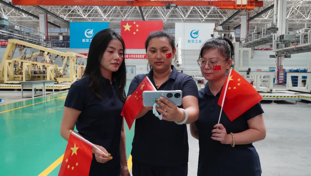 當(dāng)我們自主研制的教10飛機(jī)以矯健的身姿、精準(zhǔn)的隊(duì)形飛越天安門廣場(chǎng),公司干部職工鼓掌歡呼。