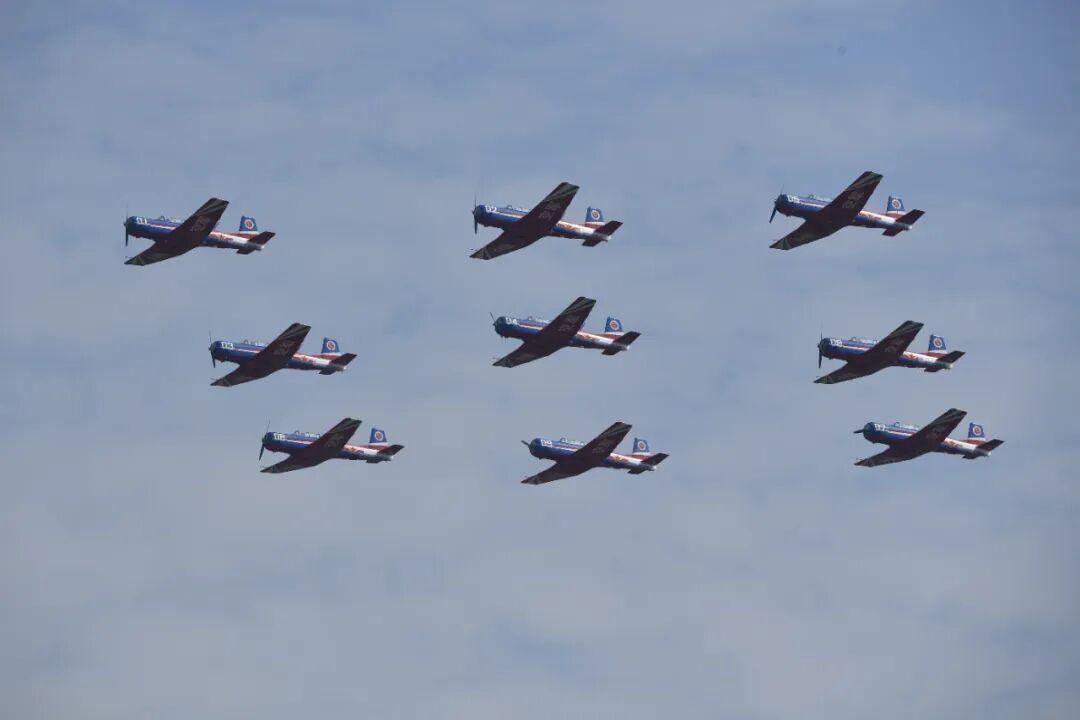 作為飛行員的“啟蒙導(dǎo)師”,初教-6見證了無數(shù)飛行員的成長,是空軍航空大學(xué)“天之翼”飛行表演隊(duì)的“好搭檔”。這次“天之翼”增加了新的動(dòng)作,如“九機(jī)鷹隊(duì)”、“四機(jī)跟蹤盤旋”、“九機(jī)威龍”隊(duì)形通場等,彰顯了初教-6穩(wěn)定、可靠的飛行性能。